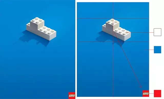 有趣的创意:简单的几块积木倒影出一艘轮船的形状,蓝色的背景犹如大海,寓意乐高玩具可以锻炼小孩的想象力。
