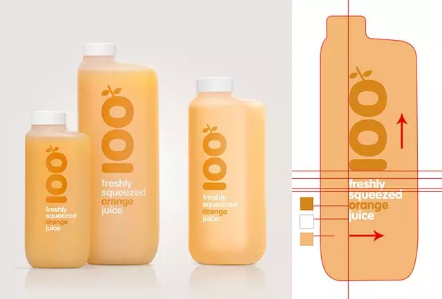 有趣的创意:把100%的“%”符合演化成两片小树叶,正好与下面的“0”组合成一个桔子;